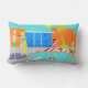 ¡Adelantado adentro! ¡El agua está muy bien! Esta almohada lumbar de la fiesta en la piscina retra ofrece un dibujo vibrante, del dibujo animado de una diversión y a una fiesta en la piscina sofisticada. Los centros de concepción moderna de los mediados de siglo alrededor de una piscina redonda en un patio grande, gris, concreto. La piscina se llena de agua de la turquesa. El ladrillo anaranjado rodea la piscina y hay un blanco, tablero de salto del tablón todo listo para un alma aventurera. Una pelota de playa roja y blanca está flotando en el agua. En el lado opuesto de la piscina, dos fiesta-asistentes están colgando sus pies en el agua, mientras que descansan sobre las toallas de playa rayadas rojas y blancas. La mujer con el pelo negro está llevando un rosa, traje de baño de una sola pieza. Al lado de ella es una bebida tropical en un coco con un pequeño paraguas y una paja verde. El hombre rubio está llevando troncos brillantes, verdes. Lo golpean con el pie apoyó con sus manos detrás de su cabeza. A la izquierda de la piscina, es un hombre distinguido con los troncos de nadada del pelo blanco y del jade que llevan a cabo una bebida en una cáscara del coco. ¡Sabemos que él ha distinguido porque él es un hombre con el pelo blanco! Él está hablando con una mujer con el pelo rubio y una figura del reloj de arena que lleva un traje de baño de la turquesa. Se lanza con una honda a través de su brazo una toalla de playa amarilla. Detrás de esta escena es la silueta verde de una palmera y de un futurista, anaranjada, casa del ladrillo. Con el grande, piso al techo, ventanas de cristal azules, usted puede ver la silueta de una televisión, de una silla, de un otomano, y de un reloj del starburst. El cielo detrás de la casa es una turquesa despejada con un sol redondo, amarillo. El lado opuesto de la almohada ofrece un modelo anaranjado del ladrillo.