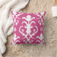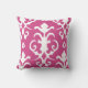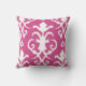 Almohada de tiro con un modelo del damasco. Hecho a mano en los E.E.U.U. Almohada grande del algodón con un diseño del damasco del vintage en blanco en un fondo rosado oscuro (otro colorea disponible).