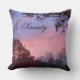 Serenity está escrito en el bonito cielo de la puesta de sol. Almohada reversible con hermosa puesta de sol con cielo de la naturaleza madre en amarillo, rosa y azul en ambos lados sobre árboles rojos y otros árboles de otoño. Deje la escritura de Serenity, o haga clic en personalizar para insertar un nombre o mensaje. Foto tomada de la espectacular puesta de sol de otoño, NJ. Fotografía original © TamiraZDesigns.