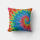 Un diseño colorido de teñido con nudos crea una divertida almohada retro al estilo de los sesenta en colores arcoíris.