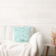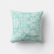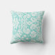 Aguamarina elegante y moderna de la turquesa azul y almohada de tiro decorativa con monograma del damasco del modelo floral clásico blanco del vintage. Completamente adaptable, añada el su nombre o el otro texto para un artículo casero verdaderamente único de la decoración.