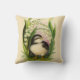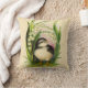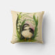 Almohada con un pajarito con coloración blanca y negra, como un pinzón o un carbonero montañés, rodeado de hojas, flores y hierba. ¡Ideal para Pascua o simplemente primavera!