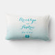 Personalizado monogramado blanco y azul (azul scuba) caballito de mar boda almohadas con texto de personalizable