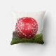 Navidades al aire libre almohadas con bolas de Navidad rojo y decoraciones.