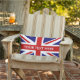 Almohadas de tiro al aire libre de la bandera británica de Union Jack. Diseño inglés del orgullo con colores blancos y azules rojos. Decoración casera de encargo para el patio del jardín, la yarda, el banquete de boda, la terraza, el restaurante, el café, la barra, el pub, las decoraciones de moda del etc. para la sala de estar exterior. Añada su propio apellido personalizado de la familia, letras del monograma, decir o cita divertida. Reino Unido BRITÁNICO, imagen patriótica del GB Gran Bretaña.