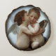 Deliciosa almohada redonda con una imagen de arte antiguo de dos querubines