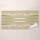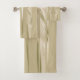 Esta obra combina simetría y color para crear una composición atractiva de rayas verticales con una mezcla suave y delicada de patrones de color espejo de almendras y perlas sobre un lienzo de color caqui claro y mudo, lo que da lugar a un juego de toallas de baño de arte abstracto y chafonante.