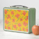 Este clásico tarro de almuerzo tiene un hermoso patrón floral con flores rojo-naranjas brillantes y tallos y hojas verdes.