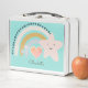 Moderna y adorable caja de boho acuarela color arcoiris pastel, con un pequeño corazón rosado y estrellas, y el nombre de su hijo.