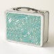 Es hora de volver a la escuela. ¿Quién quiere un nuevo Lunch Box? Caja de almuerzo metalizado de diseño retro. Esta increíble caja psicodélica de almuerzo metalizado parece agua verde giratoria. La caja es de acero inoxidable plateado.
