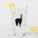 Una alpaca blanca y negra decora este tumbler de cristal de bonito