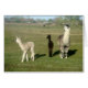 Una alpaca gris plateada cuida a dos jóvenes en esta tarjeta de bienvenida para todas las ocasiones