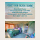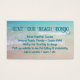 Tarjeta de visita temática de playa con plantilla de fotos en la parte posterior. Utilice esta tarjeta tropical para alquilar un condominio vacacional, una cabaña de playa o una habitación, excepto el mar. Título texto y párrafo de texto impreso, negro para información de condo, sobre un bonito, agua tropical oceánica y arena de playa. Incluya una imagen personal en la parte posterior, o elimine la imagen para una parte posterior blanca.