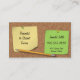 Esta tarjeta de visita única, profesional del profesor se adapta para los profesores elementales, intermedios, y secundarios. Ofrece un post-it amarillo y verde o notas pegajosas y un pedazo rasgado de papel de nota pegado al tablero del corcho con pernos redondos del empuje y un lápiz y a los paperclips en la superficie de la escritura. Esta tarjeta de visita es también perfecta para los vendedores de oficina, los recepcionistas, los oficinistas, los estudiantes que buscan el trabajo del verano, los profesionales que trabajan en un escritorio, los escritores, los profesores, los recursos humanos, y cualquier persona que busca una tarjeta inmóvil única y de la diversión de la oficina de visita. Los diseños del PAM ©2012.