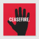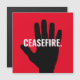 Alto al fuego mano negra blanca negrita personalizado texto contra imán de guerra. Texto blanco, mano negra, fondo rojo. Texto de personalizable completo. Conflicto entre Oriente Medio y Gaza.