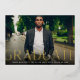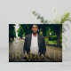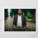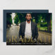 La invitación de fotos de graduación moderna presenta una foto horizontal o orientada al paisaje en el frente, con "Graduado" colocado en negrita con letras de Relieve metalizado dorado que se extiende más allá de los bordes de la tarjeta, y el nombre de tu graduado, escuela y año de graduación debajo. Añade un mensaje personal a la parte posterior, junto con una foto adicional.