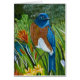 La imagen del pájaro azul occidental es tomada de un cuadro original del artista internacional Jennifer Lake. El pájaro azul es conocido por sus colores llamativos y su vibrante barriga naranja.