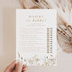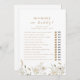 Esta conjetura de quién es la tarjeta de juegos de ducha de bebé de mamá o papá de la colección Alyssa es perfecta para una ducha de primavera o verano o para rociar de bebé. El diseño botánico presenta flores silvestres blancas y textos dorados con un elegante toque moderno. Personaliza las preguntas si quieres. Solicite tarjetas impresas y/o una versión imprimible que pueda imprimir localmente o en casa.