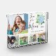 Este bloque de fotos de mamá presenta un diseño de texto de escritura moderno con LOVE YOU MOM, hidrangea de acuarela y un collage de fotos familiares. Personalízalo con tus fotos familiares y texto. Esta plantilla funciona mejor con fotografías en formato paisajístico con el tema en el centro.