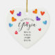 Diseño de adornos navideños Yiayia con un campo de coloridos corazones acuáticos. La parte posterior de nuestro ornamento puede ser personalizada con nombres de nietos.