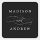 Hermosos pegatinas de boda personalizados con un elegante guión y marcadores de posición para los nombres de la pareja con un fondo negro. Usa stickers de boda personalizados para favores de boda, sellos para sobres, scrapbookers y más!
