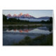 Uno de los lugares más famosos para ver el amanecer en el Parque Nacional del Gran Tetón es el Aterrizaje Schwabacker. Aquí se ven las famosas montañas reflejadas en una pequeña cala, en su mayoría todavía en construcción. Esta foto también aparece en el papel panorámico "Sunrise at Schwabacker Landing" (Amanecer en Schwabacker aterriding) de www.mlewallpapers.com.