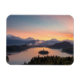 Imán de recuerdo rectangular con fotos de un colorido amanecer sobre el lago Bled con la isla a primera hora de la mañana en Eslovenia.