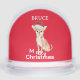 ¡Qué divertido! Un perro deseándoles a todos una Feliz Navidad sentándose y aplastando las palabras. Personalice con su nombre o elimine el nombre por completo. Un fondo rojo y un Sombrero Santa añaden al ambiente festivo.