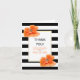 Tarjeta de agradecimiento de boda con amapolas corales y rayas negras y blancas. Hermosas flores de amapola en coral combinadas con un patrón de rayas en negro y blanco adornan esta encantadora tarjeta.