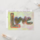 Pintura de la palabra "amor" en colores pastel del arcoiris: rojo, naranja, amarillo, verde, azul, morado. El purpurina dorado rellena la forma de la carta y proporciona textura. El fondo de la pintura se completa con una gama más ligera de pastas de acuarela suave. Personaliza esta invitación de palabra de amor usando el botón "Personalizar". Haz invitaciones personalizados con nuestro propio texto o imágenes. ¡Estas invitaciones o invitaciones de amor son geniales para bodas, compromisos, duchas, natalidad, aniversario o vacaciones como El día de San Valentín!
