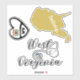 Una hoja de 3 diseños diferentes de pegatinas, con mapa de Virginia Occidental y bandera estatal. Cada pegatina está cortado y se puede eliminar por separado, de modo que se puede pegar en diferentes elementos. Diseño 1: Corazón con la bandera del estado y abreviatura del estado. Diseño 2: Tipo de letra con guiones y el indicador de estado se mezclan en un corazón. Diseño 3: Mapa de estado con el texto 'pertenecer a (H)'. Si te gusta el estado, ¡estos son geniales para mostrar ese amor, pegándolos en tu auto, laptop, teléfono, ventana o cualquier otra superficie lisa!