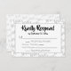 Una tarjeta de respuesta de boda simple, pero moderna con amor repetido en el fondo. Una letra elegante está emparejada con una tipografía moderna para crear un aspecto elegante.