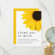 Amarillo Atrevido Girasol Rústico Agradecimiento Recién Casados. Un girasol gigante y hermoso llena la parte superior derecha y el encabezado es grande abajo en minúsculas elegantes con los detalles en la parte inferior. Personalice fácilmente el texto con sus propios detalles.