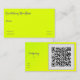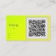 Plantilla de tarjeta de visita con fondo de color sólido amarillo Chartreuse brillante, código QR y caligrafía tipografías de estilo .Diseño sencillo y moderno de Alma Wad .Personalice ambos lados ahora - cambie la imagen de portada a su propio código .Viene 100 en un paquete .