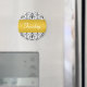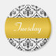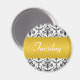 El imán "Días de la semana" del martes con una franja amarilla sobre damasco blanco y negro. Organice cualquier frigorífico o tablero magnético con este imán y los demás imanes que completen el juego. Cada una se vendía por separado, sin pedido mínimo. Elige tu imán de tamaño.