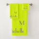 Toalla de baño Juego con fondo de color sólido fluorescente amarillo y fuentes grises. Diseño sencillo y moderno de Alma Wad . Personalícelo ahora con su nombre y monograma .