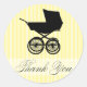 Perfecto para los favores en las duchas de bebé o gracias notas! Un fondo amarillo a rayas con un bebé buggy negro.
