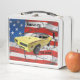 Esta metalizado lonchera es perfecta para los amantes del coche. El diseño único de un gto pontíaco -el auto del juez, con un fondo de bandera estadounidense, seguramente atraerá la atención de todos. Todo el texto es totalmente personalizable para satisfacer sus necesidades, lo que lo convierte en el regalo perfecto para cualquier amante del coche.