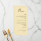 Elegante boda amarillo o carta del menú de la cena. Diseño contemporáneo, sencillo y elegante con una hermosa caligrafía escrita a mano. Color de fondo frontal y posterior en tono amarillo. Capacidad para cambiar el color de fondo frontal y/o posterior seleccionando "personalizar más adelante". Diseño disponible en una variedad de opciones de color. Parte de nuestra colección de "Rótulos y productos para eventos elegantes amarillos" con una variedad de productos de coordinación disponibles, incluyendo tarjetas de plan de asientos y números de mesa y signos de eventos.