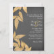 Esta bella invitación a la boda presenta una vieja textura de papel vintage con imágenes de hojas de otoño de color amarillo dorado sobre un elegante fondo gris. Excelente para cualquier novia que busque un clásico estilo vintage para su boda de otoño