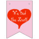 Sólo Banner de Bunting Married Red Hearts con 16 banderas grandes para mostrar al aire libre o en el interior para un toque especial. Hemos atado que el Knot está escrito en un guión divertido en la primera y última bandera. Just Married está escrito en texto rosado dentro de corazones rojos digitales enrojecidos por aire en un fondo rosado a través de las banderas. Personaliza las dos banderas entre Just Married with the Bride y Groom's First Names and Boda Date dentro de los corazones rojos. El amor está escrito en la bandera roja del corazón con el aspecto de flechas corazones entre los nombres. Esta es una gran pancarta. La cuelga en el exterior para un boda al aire libre o en el vestíbulo de la recepción. Agradable para un boda en cualquier época del año o para un El día de San Valentín. Obra gráfica original de TamiraZDesigns. Visite mi tienda para ver artículos de diseño más únicos en: www.zazzle.com/tamirazdesignss