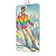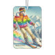 Una linda foto de un hombre LGBT presentando a un individuo, esquiando con orgullo por las pistas, mientras parpadeaba nieve con arco iris.