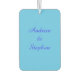 Este impresionante protector de aire está diseñado para hombres gays. Presenta dos símbolos masculinos azules uno al lado del otro. Hay un texto azul personalizable dentro de cada uno de los símbolos para poner nombres. También hay texto de personalizable en la parte posterior.