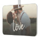 Foto de pareja corta con escritura manuscrita de amor. Agrega tu propia foto de ti y de tu ser querido a este refrigerador de aire del auto.