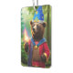 Imagen de un asistente de oso marrón con barra de fuego y atuendo de mago.