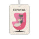Este ambientador de aire del auto tiene gatos de mediados de siglo, un negro, un blanco sentado en una silla rosa todo con una mirada dimensional en un fondo blanco con puntos de polka rosados. Personalizar el texto con la plantilla.