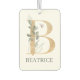 Letra B monograma floral. Letra B en textura marrón dorada acentuada con hojas y bayas compuestos de acuarela verde y polvo de oro. Personalizado con el nombre en el tipo de letra coincidente.