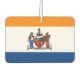 Air Freshener con la bandera de Albany, Nueva York. Bandera naranja, blanca y azul con el emblema de la ciudad en el centro