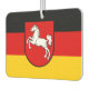 Freshener de aire con bandera de la Baja Sajonia; diseño con tricolor horizontal de negro, rojo y amarillo (dorado), con emblema del estado con el ilustracion de un caballo blanco en el centro