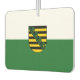 Aire Freshener con bandera variante de Sajonia; diseño con dos bandas horizontales de verde y blanco, y con escudo de armas estatal en el centro